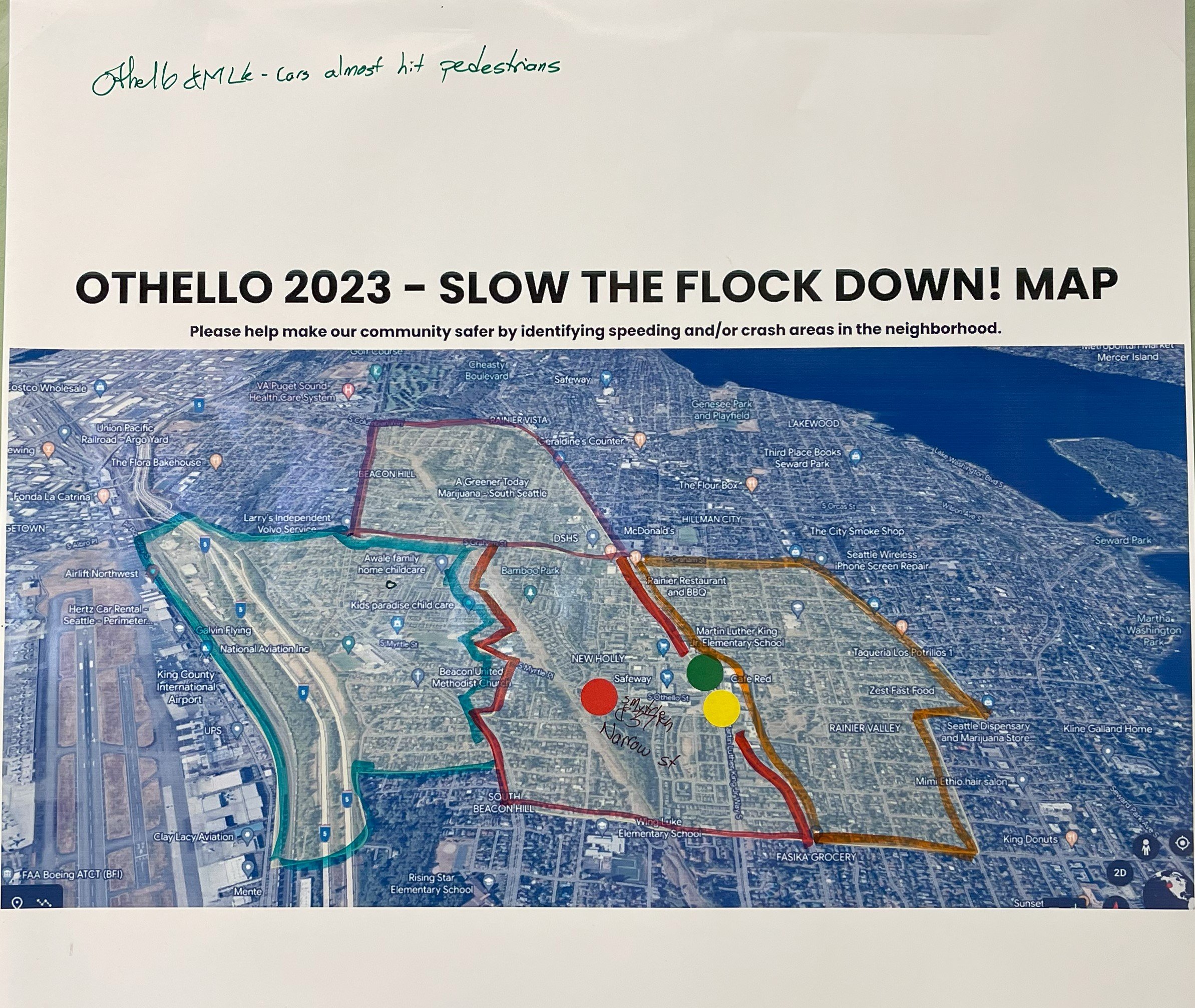 This past summer we worked with Seattle Department of Transportation (SDOT) to help Seattle’s SE community identify problematic areas (ex: crashes, high speeding, serious injury, fatalities). As part of our outreach efforts we held a pop-up tabling event on Wednesday August 30th, from 5pm-7pm at the corner of Martin Luther King Jr. Way S. & S. Othello St (aka at the Othello Light rail station).